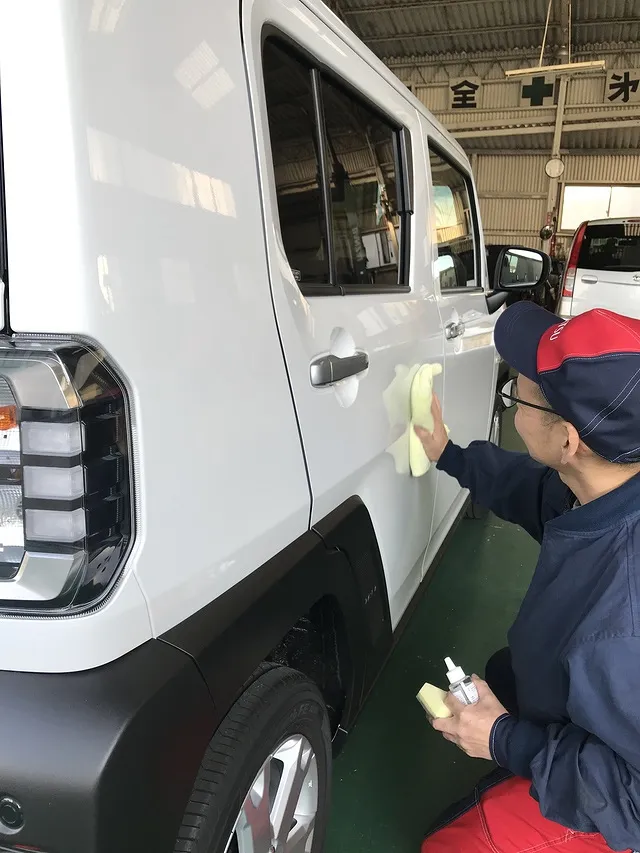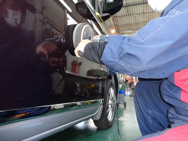 ボディの下地処理を行います。カーポリッシングでボディーの細かな傷(洗車キズ)を磨き、塗装面を平滑にすることで、失われていたボディの艶が出ます。