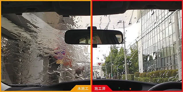高耐久性の撥水ガラスが雨の日の視界を『安心』に変えます。