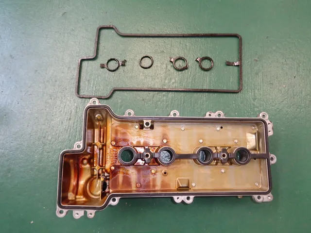 作業を進めているとヘッドカバーからのオイル漏れがあることも判明し、お客様に相談しヘッドカバーガスケットも交換させていただきました。